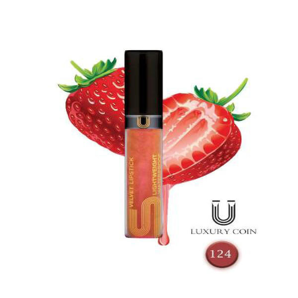 رژلب مایع حجم دهنده صورتی/شماره 124 /برند لاکچری کوین