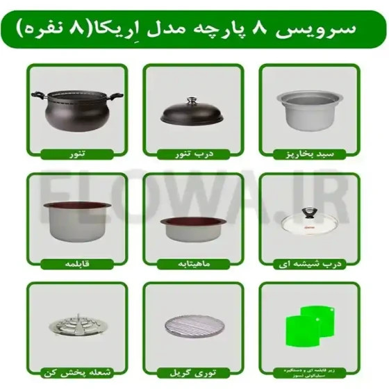 تنور ناخ 8 پارچه 8 نفره اریکاـ کباب پز-پلوپز-بخار پز-گریل کن-کیک پز-تنوری- خرید قسطی با ترب پی