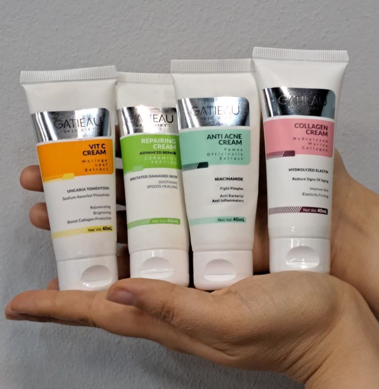 کرم دوم سبز رنگ ترمیم کننده سمت چپ: 5 کاره است/پایه اصلی 60 درصدش ترمیم کننده اس 40 درصدش روشن کننده/تقویت کننده پوست/مغذی پوست/ابرسان/رطوبت رسان/ضد لک/رفع جای جوش و سالک/رفع جای سوختگی/رفع اسکار /مناسب پوستهای نیاز به ترمیم/هر شب روی پوست مقداری کرم بزنید و ماساژ دهید-40 میلی حجم