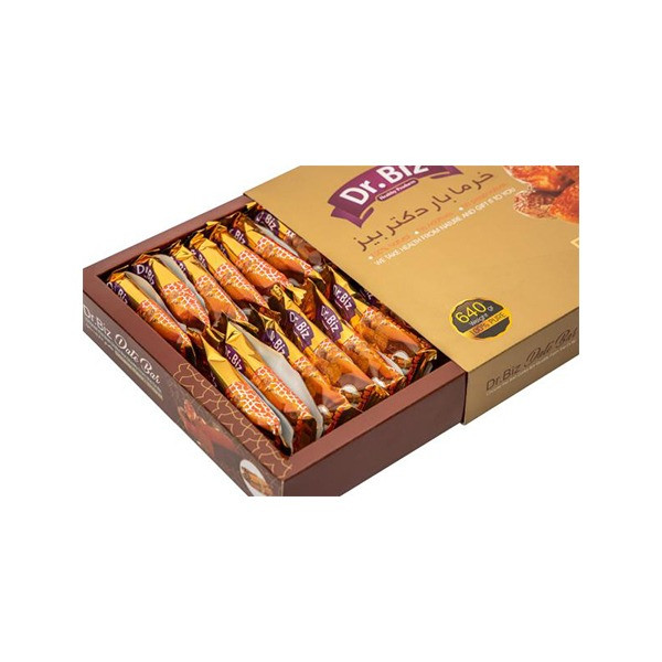 خرما بار دکتر بیز با استفاده از خرمای درجه یک خوراکی و پس از تایید کنترل کیفیت خرمای ورودی توسط دستگاههای تمام اتوماتیک اروپایی ضمن فرآیند ضدعفونی و پاستوریزه فرآوری و بسته بندی می گردد.